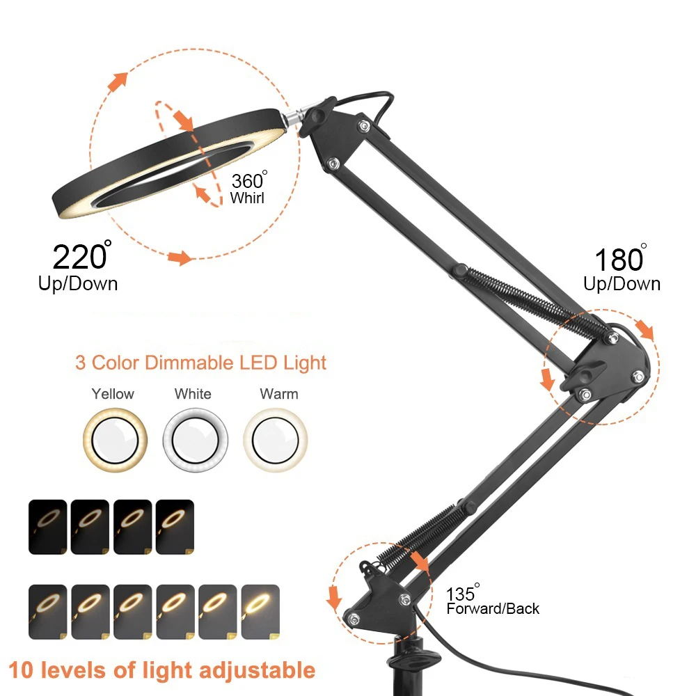 Facial Lamp with LED Magnifying Glass Table Lamp with Clip Long Arm Desk Lamp