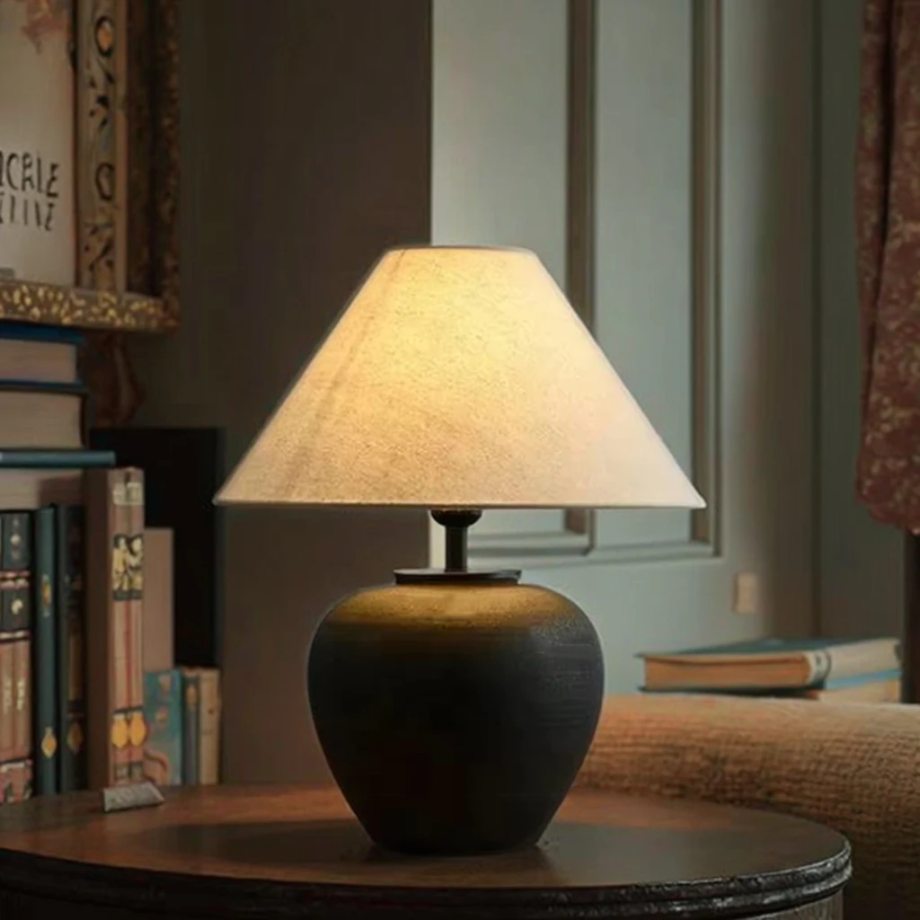 Factory Wholesale Ceramic Table Lamp Antique Ceramic Lamp Holder Old Table Lamp with Fabric Lampshade