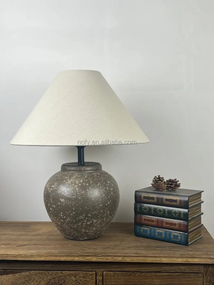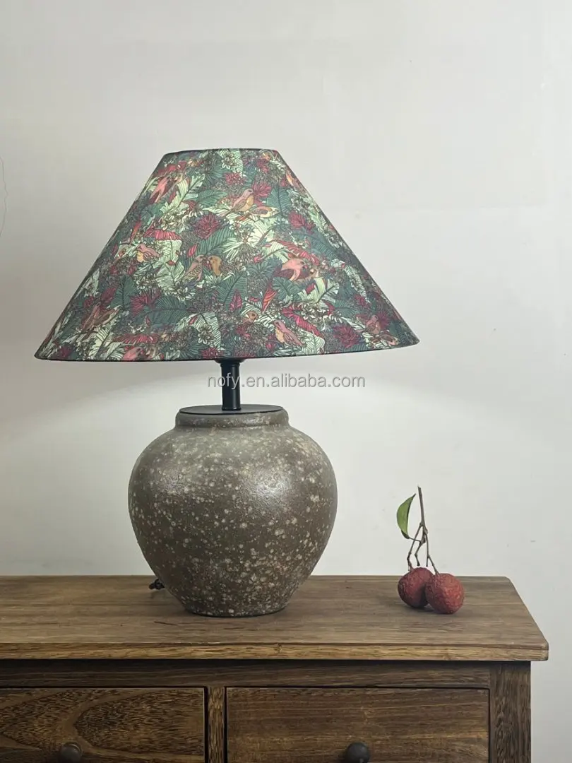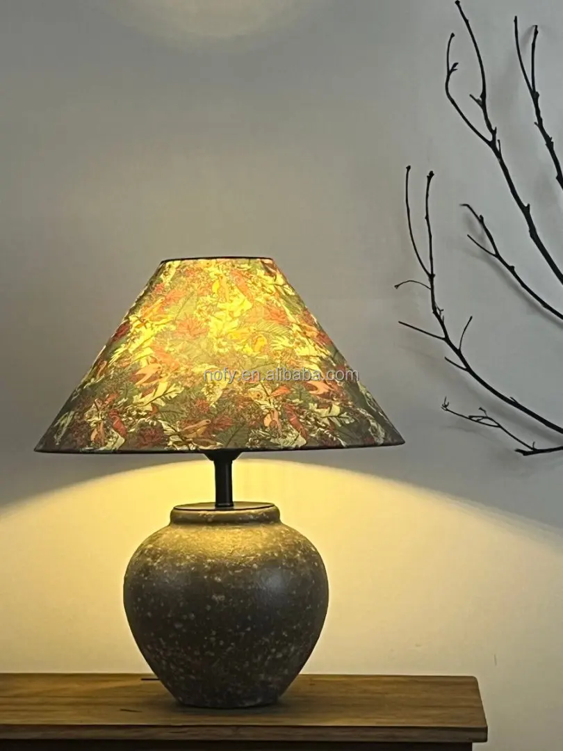 High Quality Home Decorative Handmade Ceramic Desk Lamp Creative Hotel Bedroom Bedside Table Lamp Fabric Lampshade