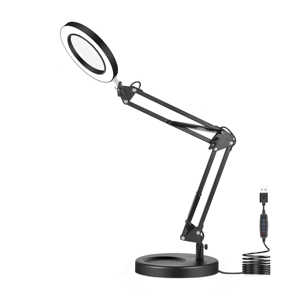 High Quality Salon Work Folding Long Arm Desk Lamp with 8x Magnifier Nail Art Reading Table Lamp