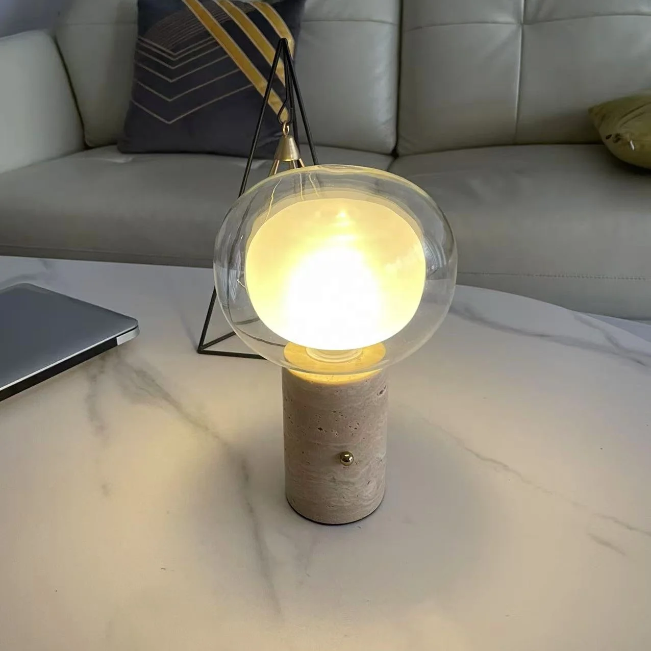 Popular Items 2025 Rechargeable Travertine Base Design Glass Lampshade Table Lamp Desk Light