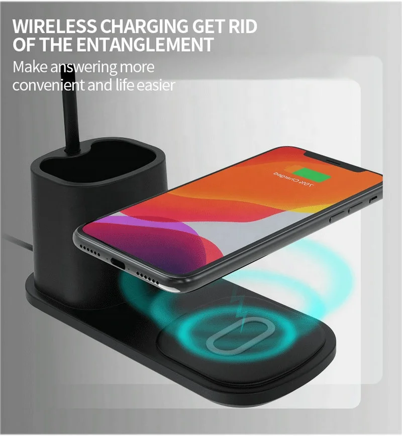 2025 New Hot Products Living Room Lamp 10W Fast Wireless Charger Station With LED Lamp Flexible Table Lamp for Restaurant