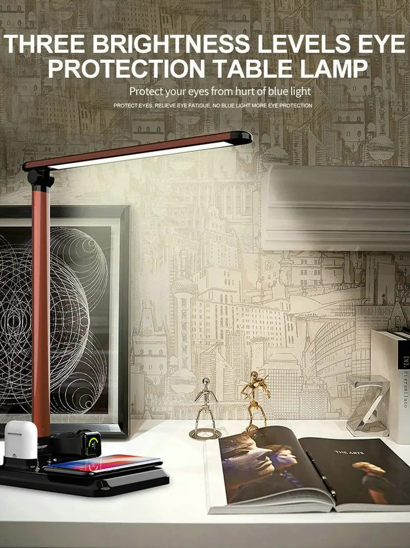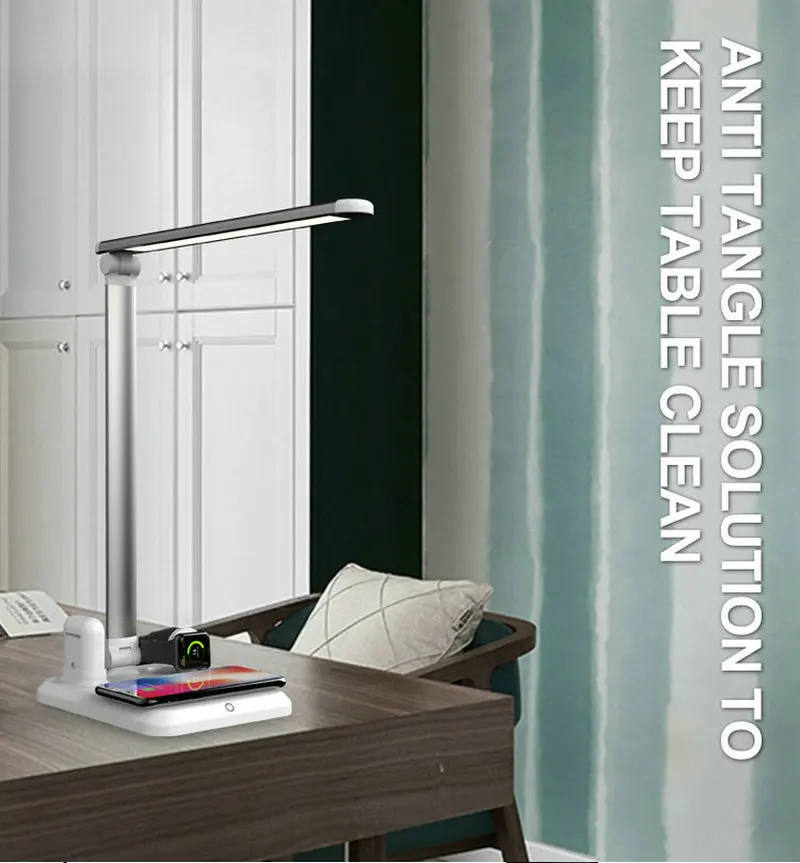 2025 New Product Dimmable Rechargeable Led Light Desk Lamp With Fast Wireless Charger Folding Table Lamp For Office Student