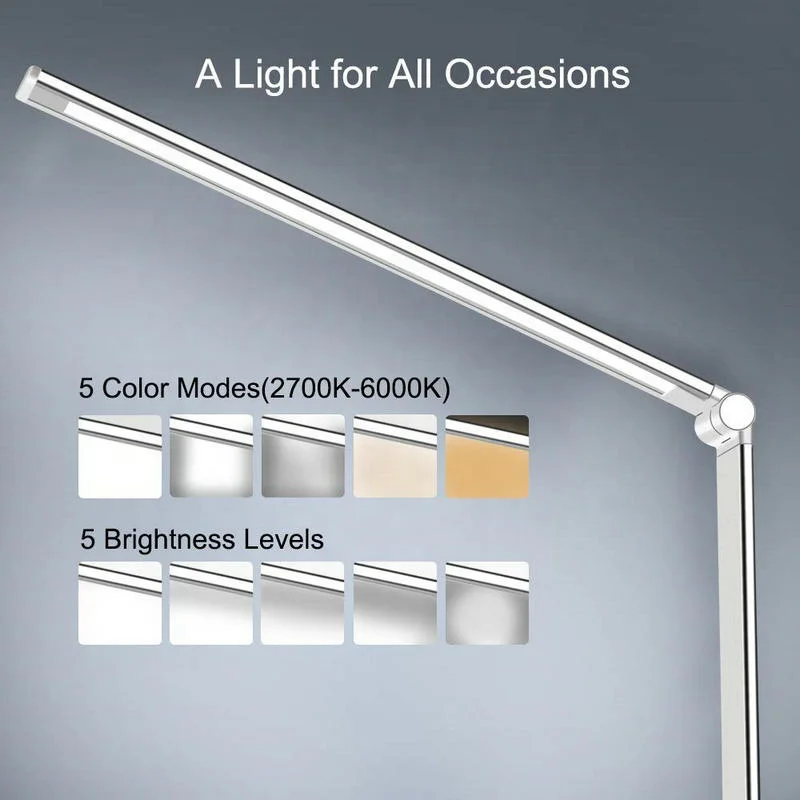 * 5 Dimming Modes Choices: This eye-protecting led desk lamp provide 5 dimming modes choices(Yellow/Warm white/White) for works(Office). reading(study). relaxation(bedroom) and more. you can choose the best color of lamp that suits your best.