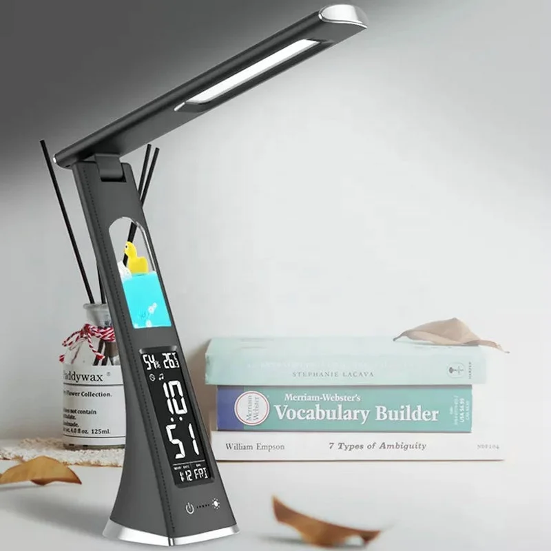Desk Lamp LED Desk Light With Clock Calender Thermometer Display Foldable Touch Switch 3 Levels of Dimmable Table Lamp Dock
