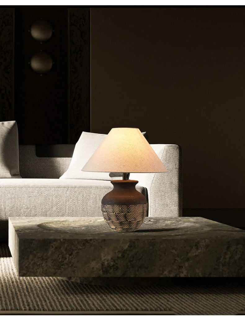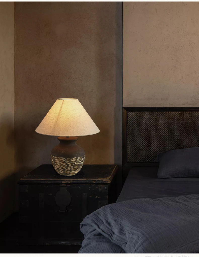 Japanese Style Home Decorative Handmade Ceramic Desk Lamp with Fabric Lampshade Retro Table Lamp for Hotel Living Room