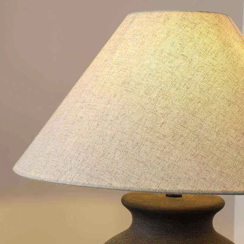 Japanese Style Home Decorative Handmade Ceramic Desk Lamp with Fabric Lampshade Retro Table Lamp for Hotel Living Room