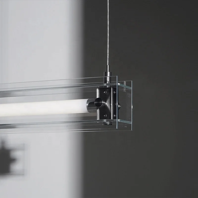 Minimalist Restaurant Art Pendant Lamp Modern Clear Glass Long Chandelier for Dining Room