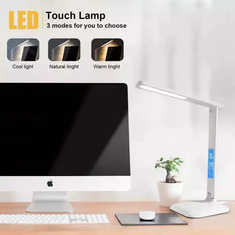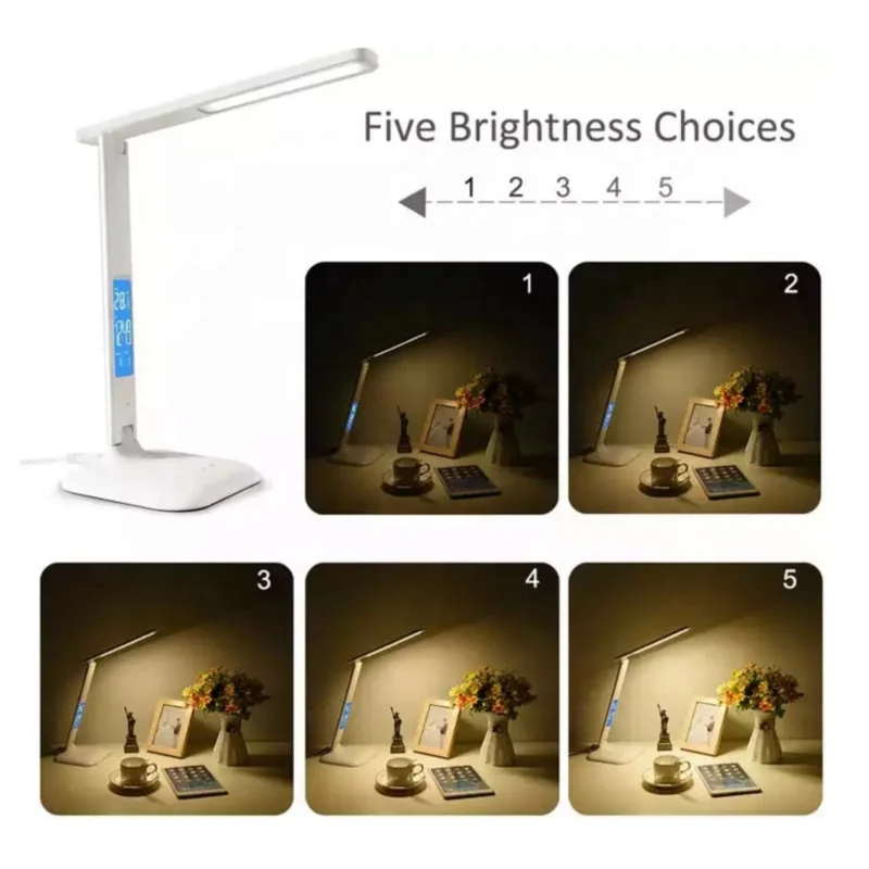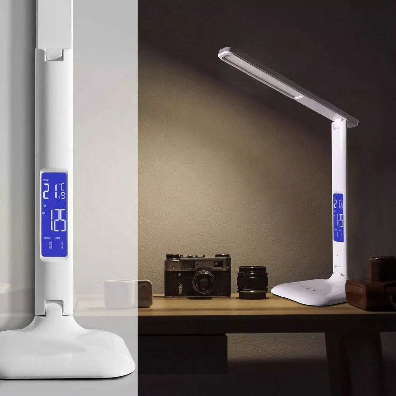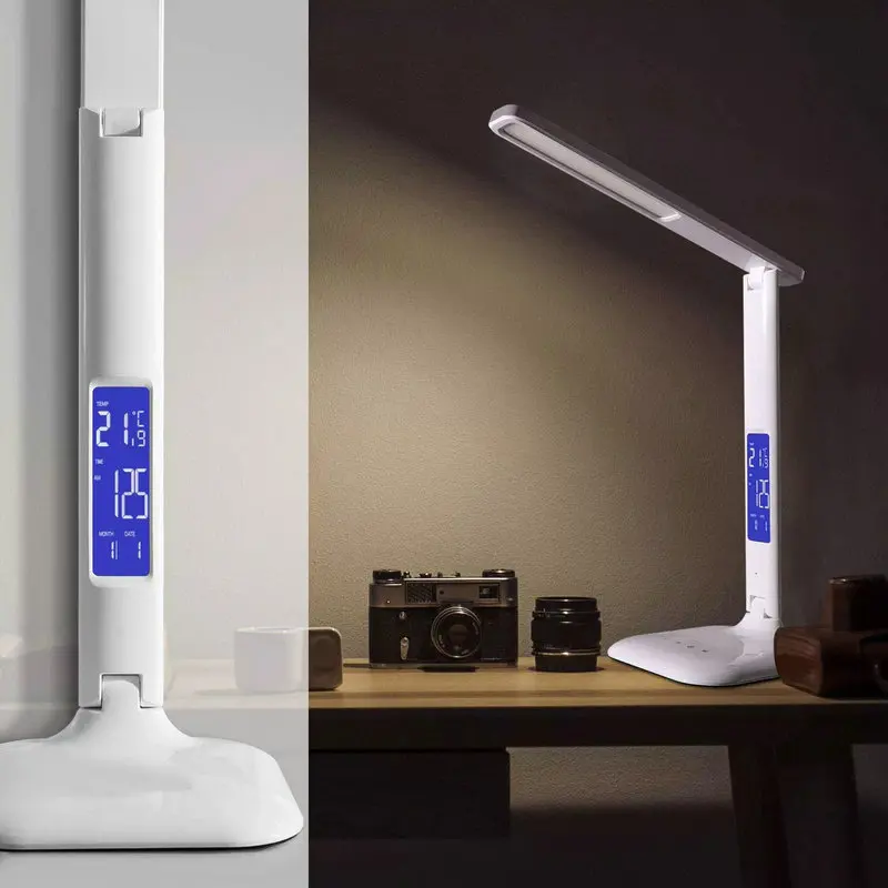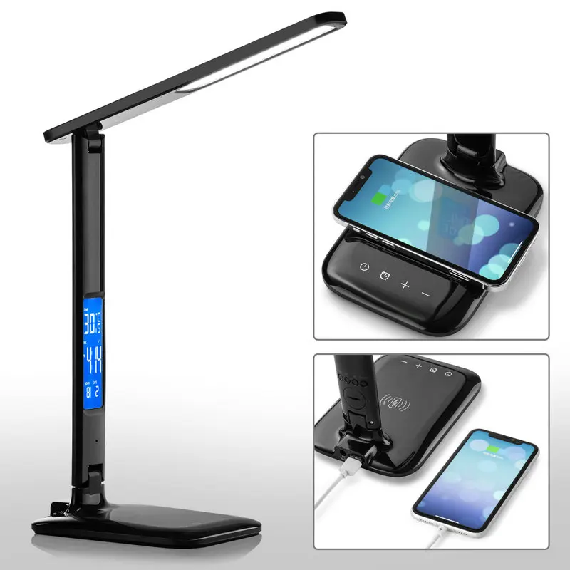 Modern Portable Study Office Bedroom Folding LED Lamp Calendar Clock LED Display Desk Lamp 10W Wireless Charging LED Table Lamp
