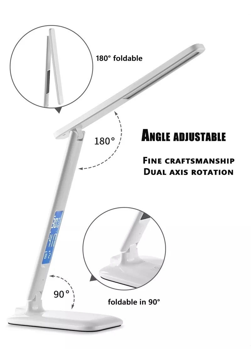 ∗ Flexible Angles: The adjustable lamp head can be rotated 180o up and down or the lamp body can be rotated 90o. so make it convenient to adjust height and you can shine a light where you need. and the base will stay sturdy when you adjust the angle. Its foldable design allows you to take it around easily and save more space.
