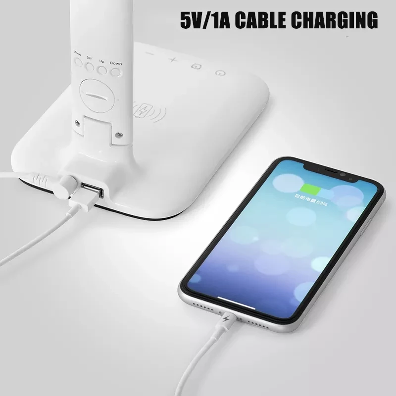 * Multiple Charging Methods: Desk lamp with 15W wireless charger & 5V1A USB charging port. can charge your cell phone and earphone. even give power to other desk lamp.