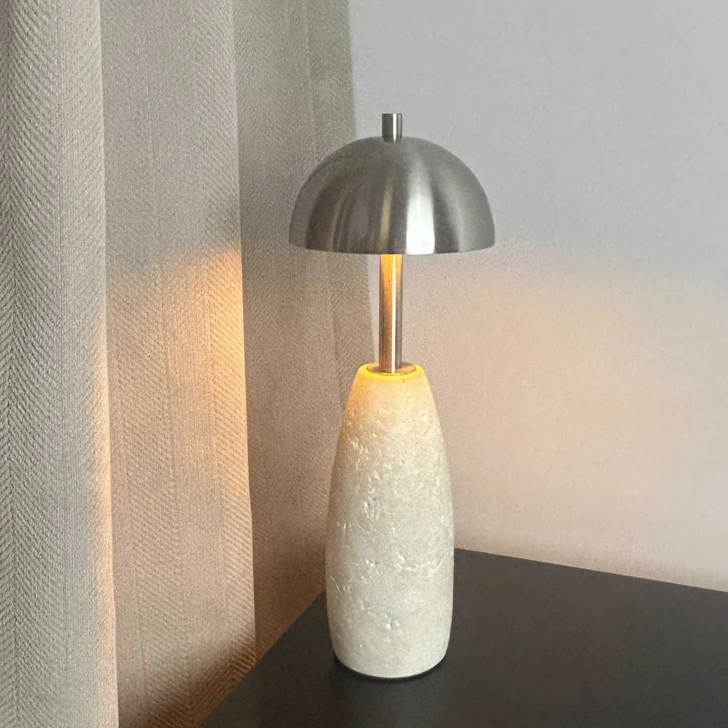 New Arrival Retro Cordless Travertine Table Lamp Hotel Bedroom Designer Mushroom Table Lamps With Battery
