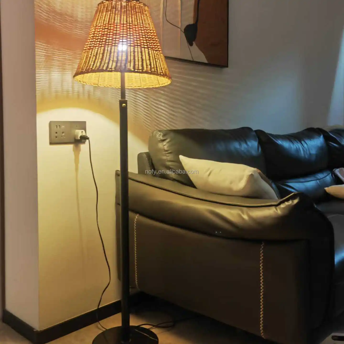 New Arrival Wabi Sabi Style Rattan Floor Lamp Hotel Living Room Bedside Standing Bamboo Woven Floor Lamp