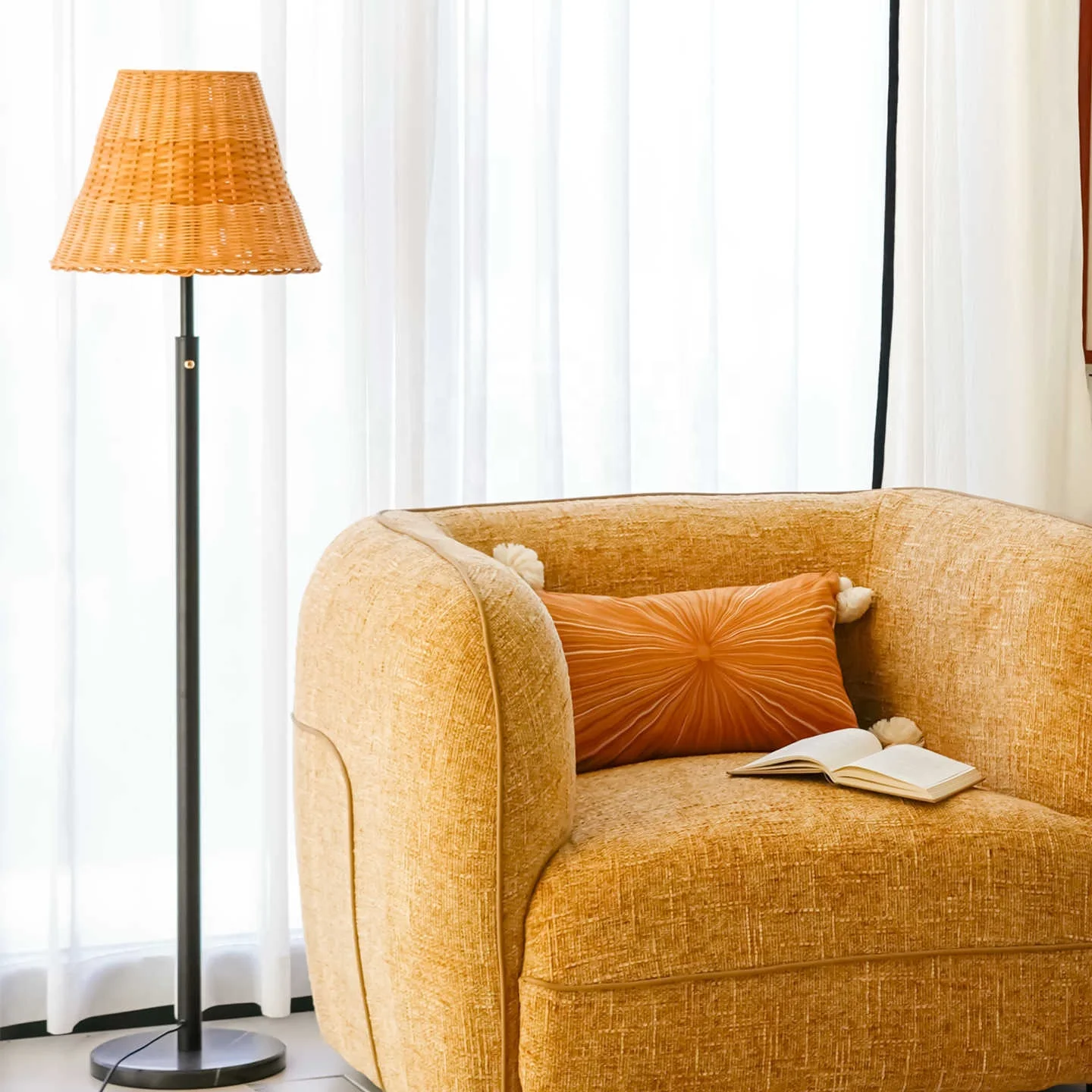 New Arrival Wabi Sabi Style Rattan Floor Lamp Hotel Living Room Bedside Standing Bamboo Woven Floor Lamp