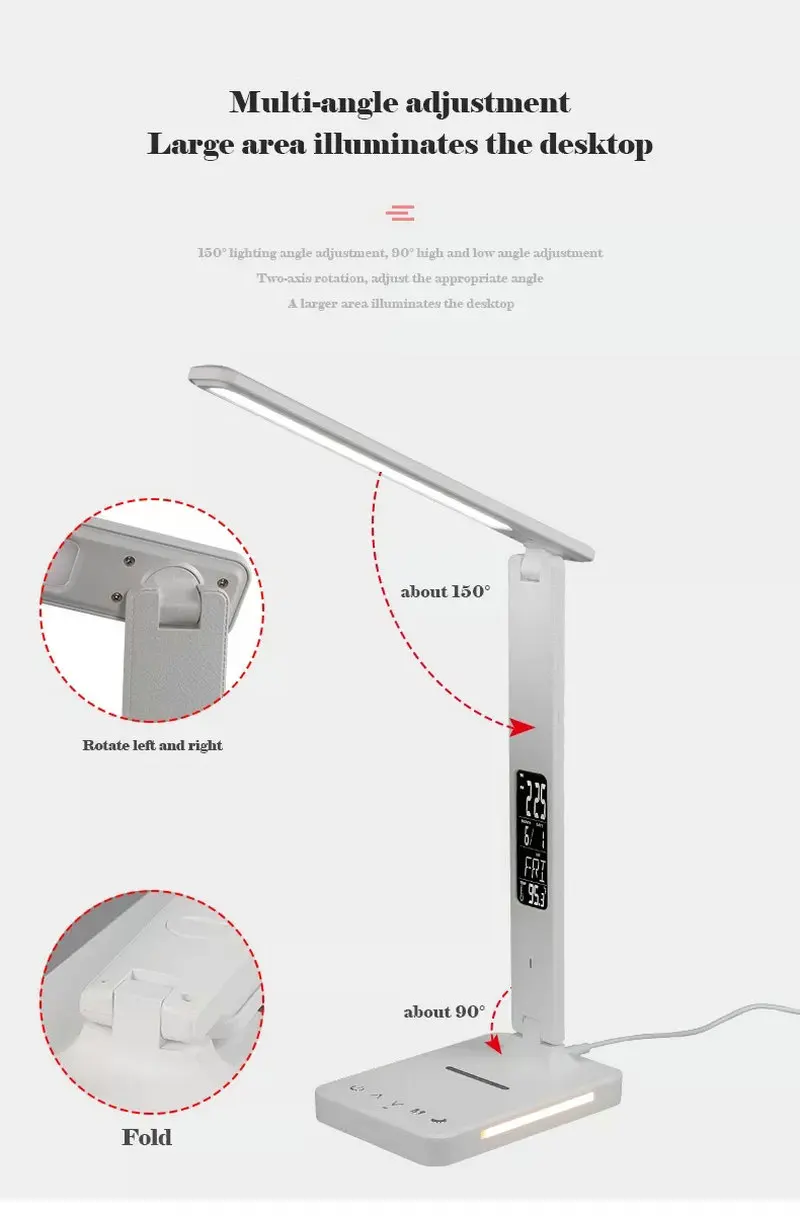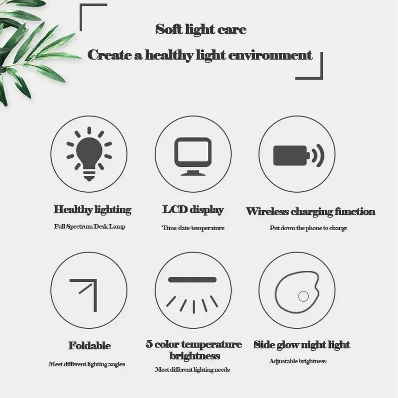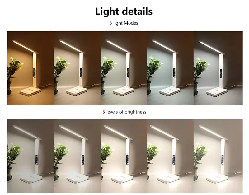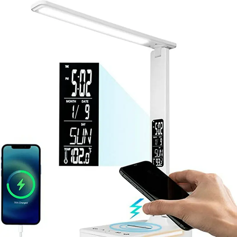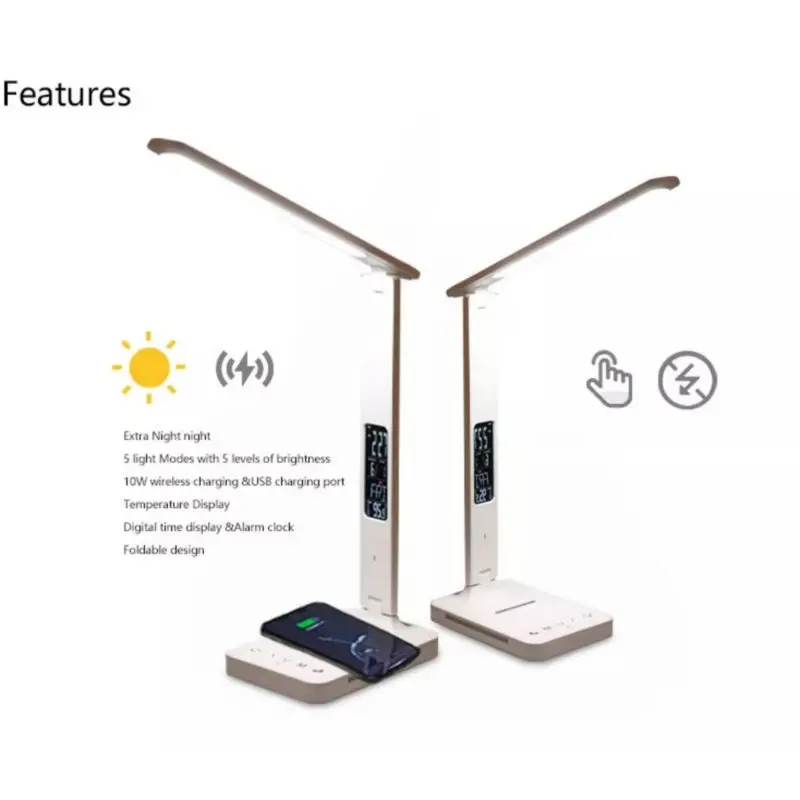 Product name | 10W wireless charger+5V2.1A USB port charger+perpetual calendar LED display+folding 5 dimming modes desk lamp+night light+phone holder |
