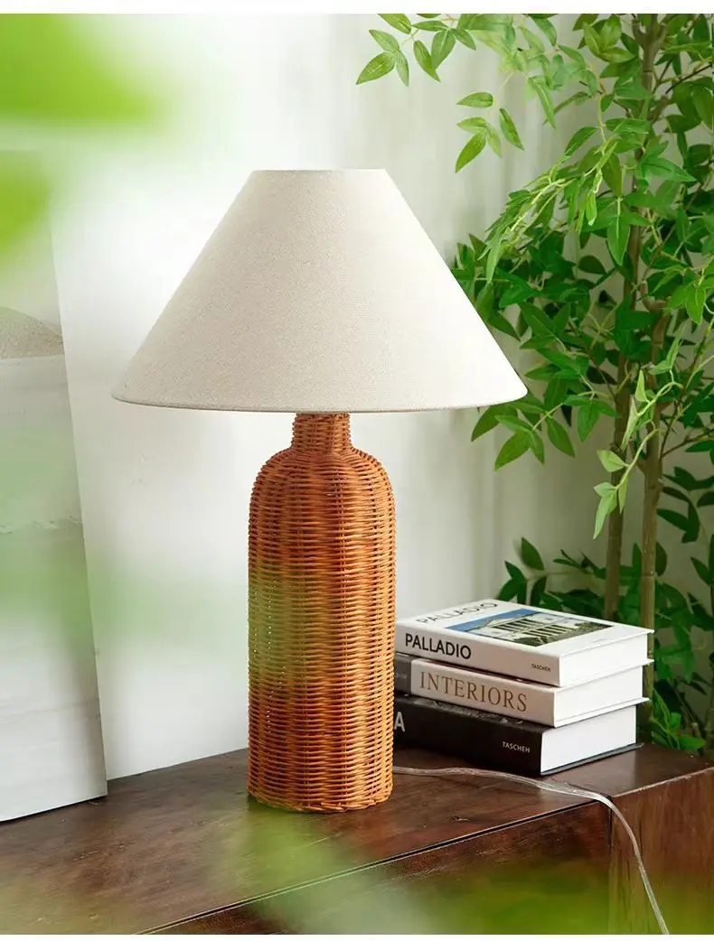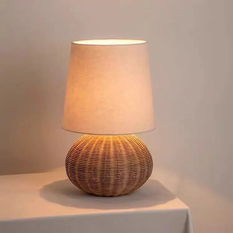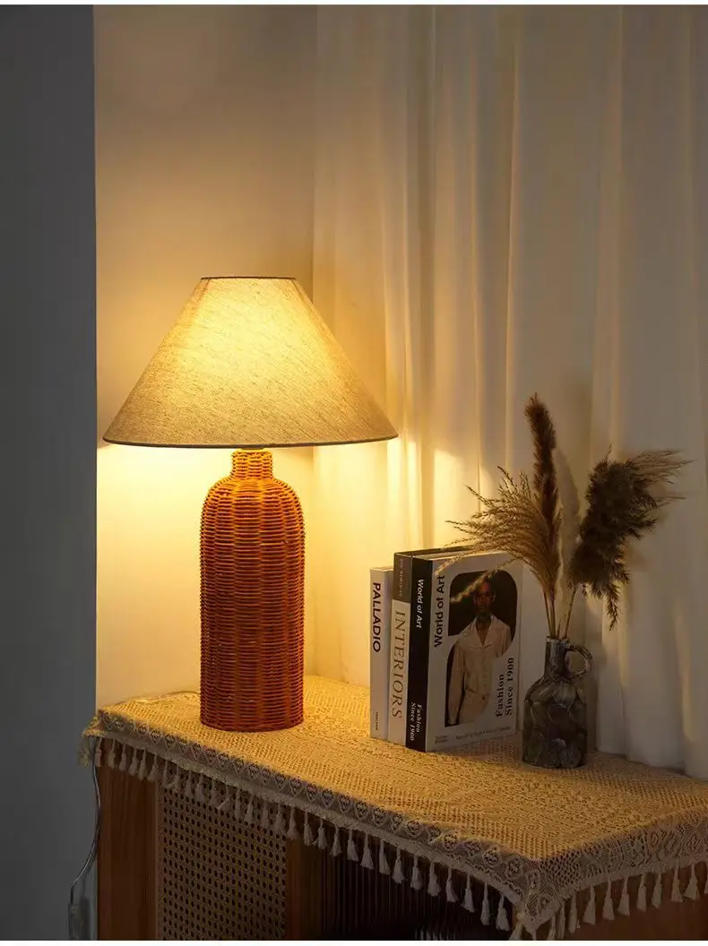 Simple Rattan Art Table Lamp Retro Homestay Home Decoration Designer Bedside Table Lamp