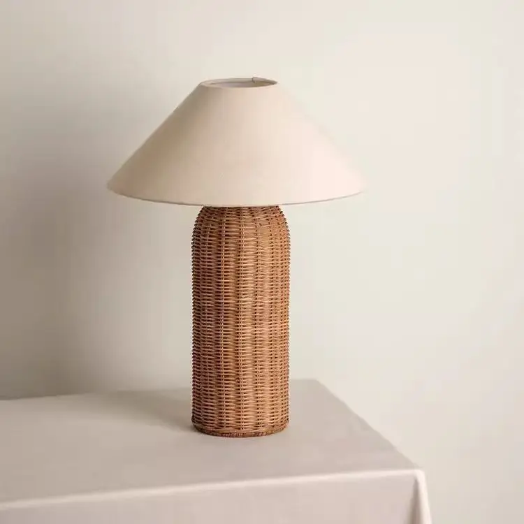 Simple Rattan Art Table Lamp Retro Homestay Home Decoration Designer Bedside Table Lamp