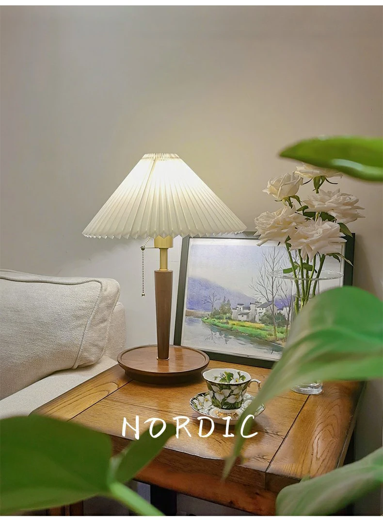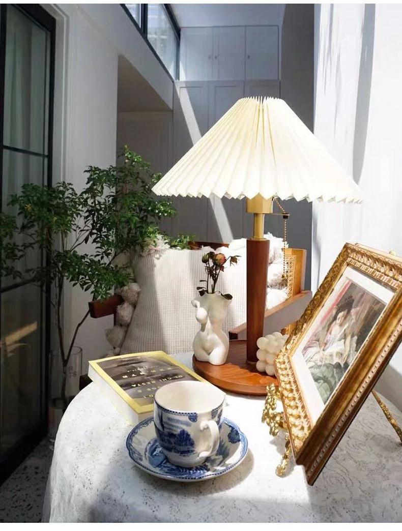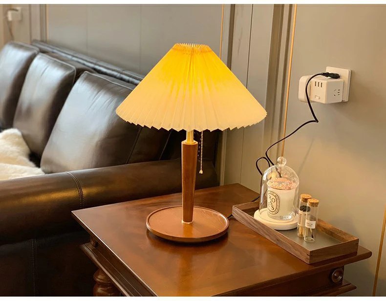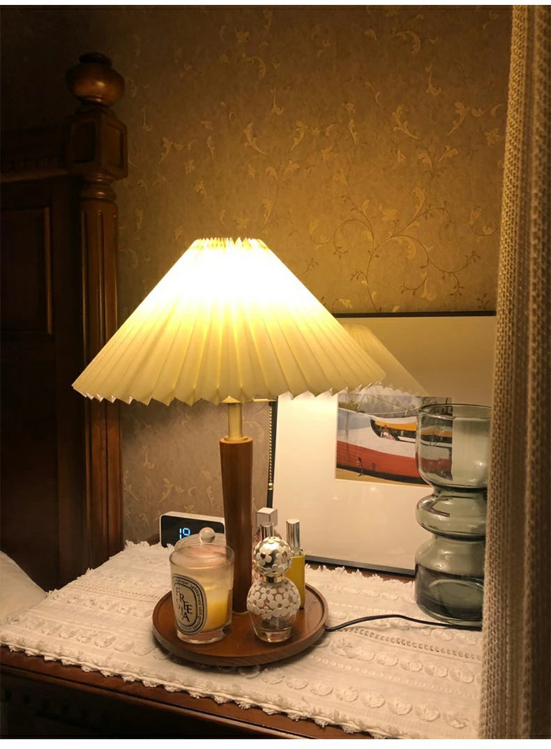 Vintage Wood Bedroom Living Room Decoration Set Table Lamp